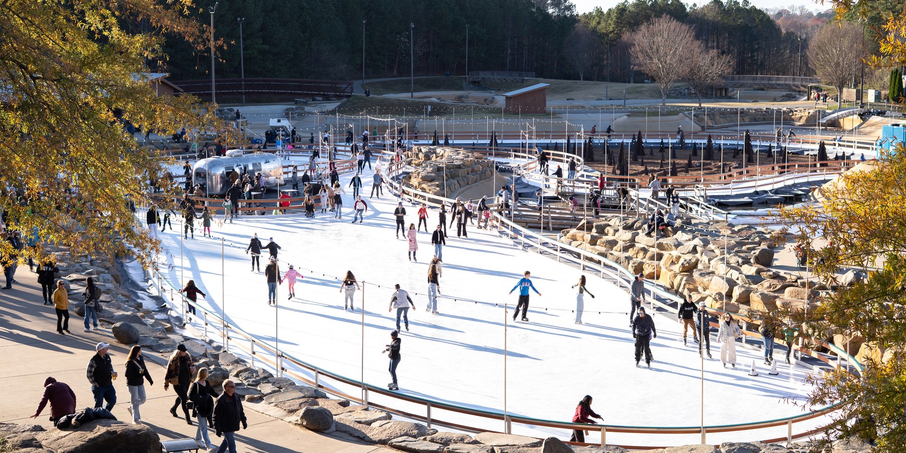 Experience more than 24,000 square feet of ice, including two ice trails, two free skate zones and an on-ice Airstream serving hot and cold beverages.
